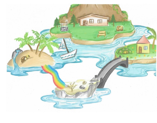 Stellen Sie sich vor, jede Person wäre eine Insel. Alles was die Person erlebt hat, ist in unterschiedlichen Ausprägungen auf der Insel vorhanden. Für positive Erlebnisse gäbe es schöne Landschaften, für Schmerzhaftes Täler und Gruben, Dinge die lieber niemand sehen soll, wären Löcher unter Dickicht versteckt, was der Person Kraft gibt sind als Quellen sichtbar, was sie gut kann, Früchte usw.